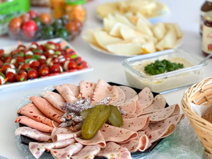 Untermalt wurde der Info-Termin vom Essen: Viele Kolleginnen und Kollegen haben Leckereien zum Frühstücksbuffet beigesteuert.